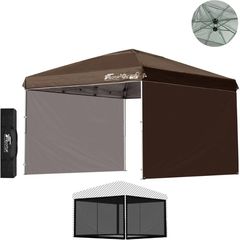 FIELDOOR ワンタッチタープテント 3m (標準:ダークブラウン/スチール/強化版サイドフレーム/4点脚ロック/タープ本体のみ/サイドシート2枚付) テント タープ ワンタッチテント ワンタッチタープ UV加工 撥水 ベンチレーション 日よけ キャンプ 送料無料