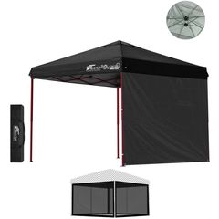 FIELDOOR ワンタッチタープテント 2.5m (標準:ブラック/スチール/強化版サイドフレーム/4点脚ロック/タープ本体のみ/サイドシート1枚付) テント タープ ワンタッチテント ワンタッチタープ UV加工 撥水 ベンチレーション 日よけ キャンプ 送料無料