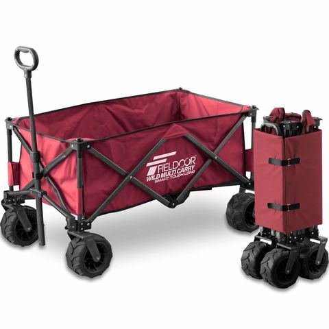 FIELDOOR アウトドアワゴン 178L (ボルドー) キャリーワゴン 大容 極太タイヤ 折りたたみ コンパクト収納 耐荷重150kg ワイルドマルチキャリー スマートタフロング アウトドア キャンプ カート 簡単 台車 アウトドアキャリー 送料無料