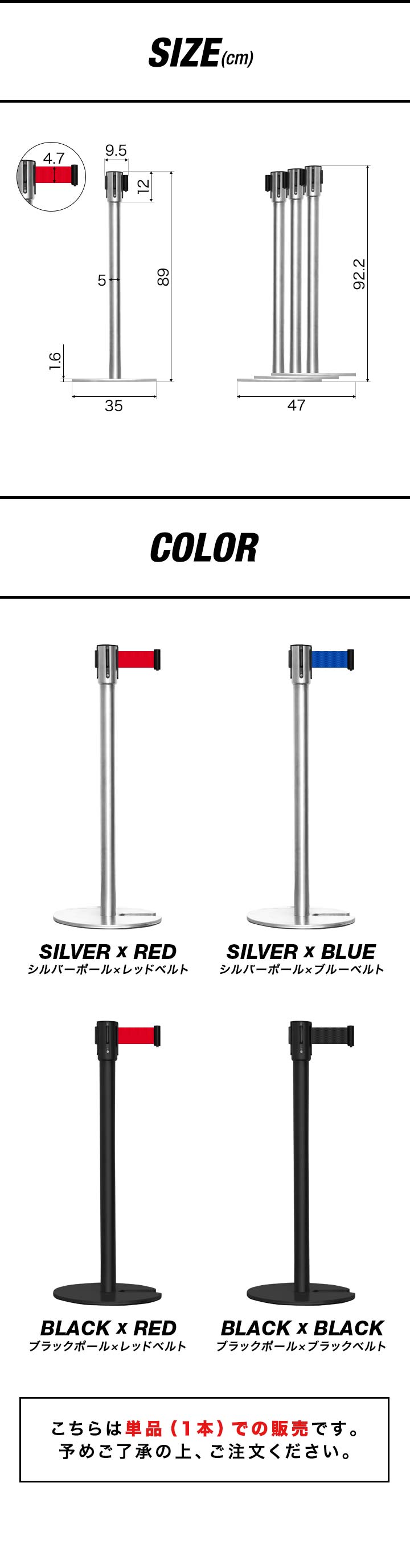 | カラー: ・シルバーポール×レッドベルト ・シルバーポール×ブルーベルト ・ブラックポール×レッドベルト ・ブラックポール×ブラックベルト |