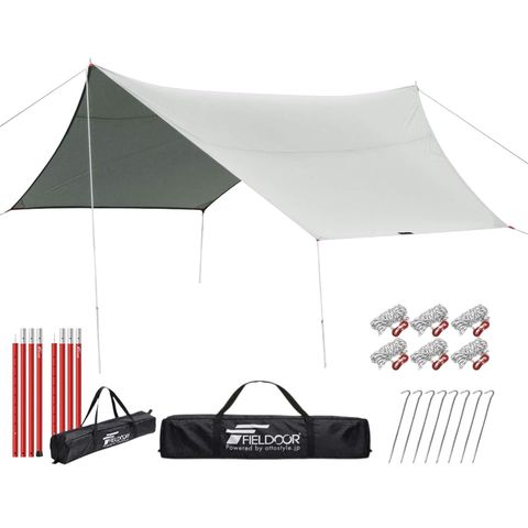 FIELDOOR タープテント ヘキサタープ (ライトグレー:標準/本体&アルミポール2組セット) 大型 Mサイズ 4.4m×4.7m 4~6人用 日よけ 六角形 UVカット 高耐水 簡易テント サンシェード オーニング コンパクト アウトドア BBQ キャンプ 送料無料のレビュー