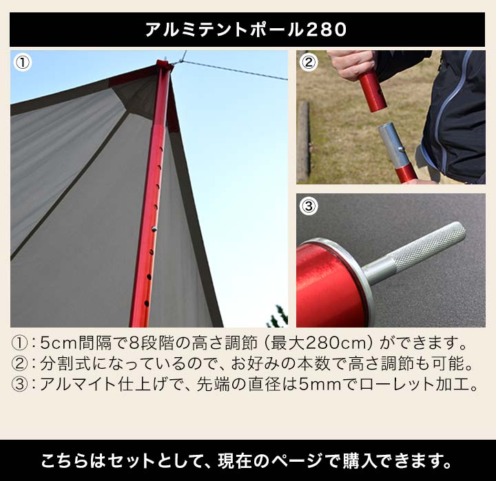 | サイズ: (約)直径3.2cm×126cm~286cm (有効長 : (約)120cm~280cm) |