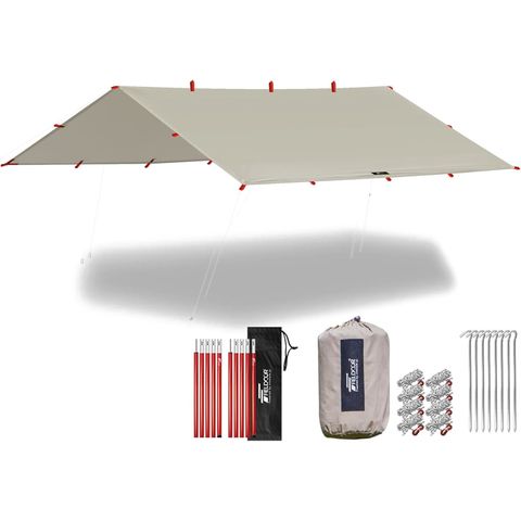 FIELDOOR タープ テント (本体&5連結150cmポール2本セット) 280 x 280cm タープテント ヘキサタープ スクエアタープ T/C ポリコットン 2 - 4人用 日よけ 撥水 防カビ 簡易 コンパクト 収納バッグ付き テントポール 2人 3人 4人 アウトドア 送料無料のレビュー
