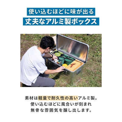 FIELDOOR アウトドア コンテナボックス (Mサイズ:65cm/単品) 軽量 アルミ 収納ボックス アウトドア 収納BOX 収納ケース アルミボックス キャンプ用品 アウトドア収納 コンテナ BOX 軽量 頑丈 大容量 送料無料