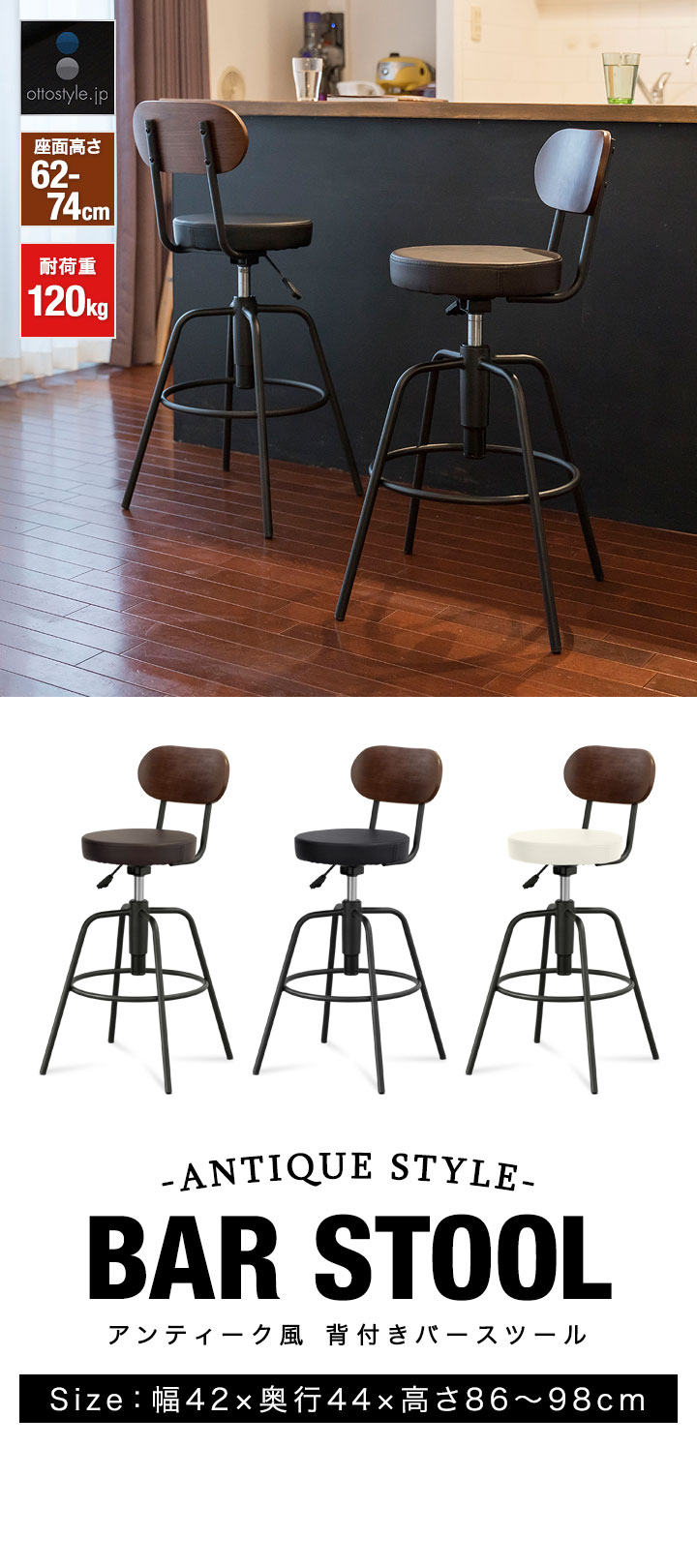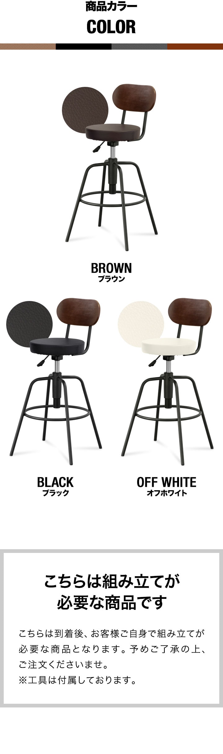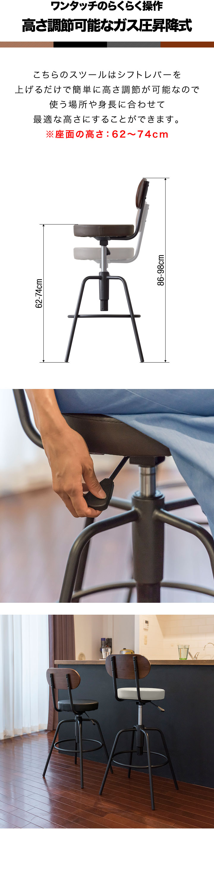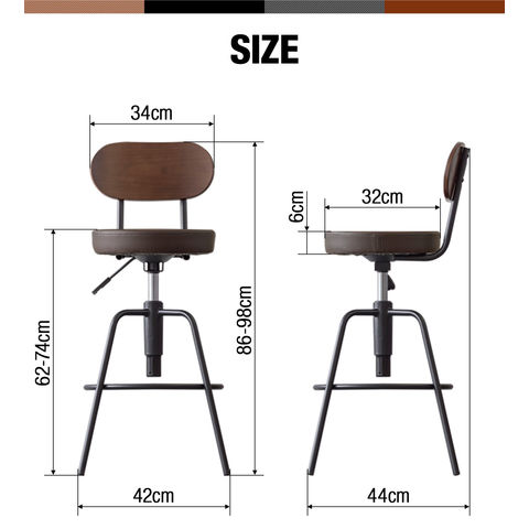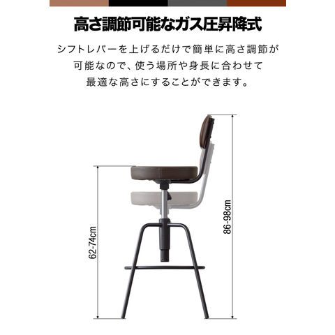 | サイズ: 本体 : (約)42cm×44cm×86~98cm 座面の高さ : (約)62cm~74cm |