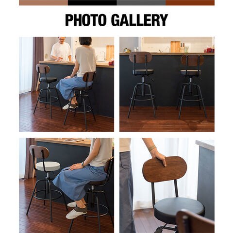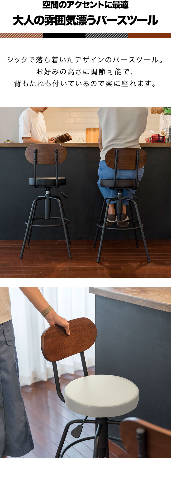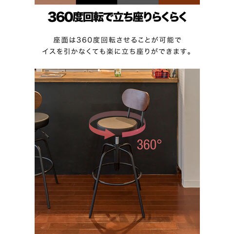 カウンターチェア (ブラック/同色2脚セット) バースツール 木製背もたれ付き 回転 ガス圧昇降 単品/同色2脚セット 高さ調整 座面高62~74cm PUレザー/ウレタン カウンターチェアー ハイチェア ハイスツール バーチェア 椅子 アンティーク ヴィンテージ モダン 70cm 送料無料