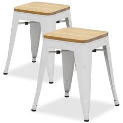 ヴィンテージ風カウンターチェア (ホワイト) 高さ66cm スタッキング アイアン×天然木座面 バーチェア ハイチェア いす チェア カウンターキッチン 送料無料