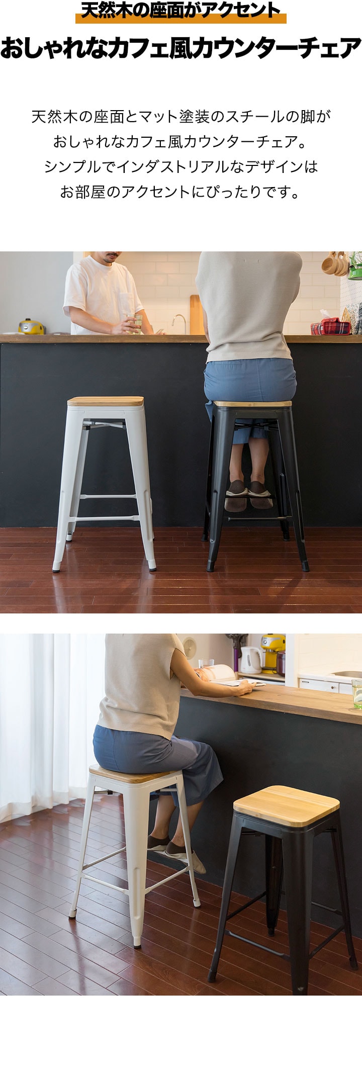 カウンターチェア スタッキング (ブラック/背もたれなしタイプ) 高さ 66cm ヴィンテージ風 スタッキングチェア キッチンチェア バーチェア 椅子 いす カウンターチェアー ダイニングチェア ハイチェア イス チェア カフェ カウンターキッチン 送料無料