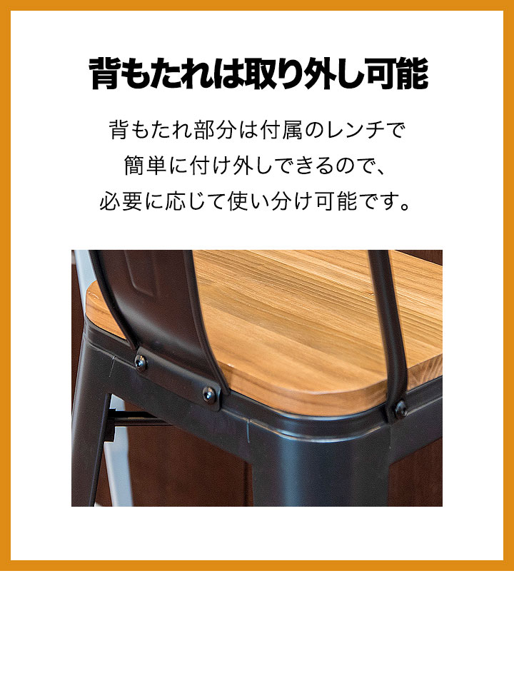| 特記事項: ※チェアの座面は天然素材を使用しているため木目や色合いに個体差があります。 ※背もたれ付きタイプはスタッキングできません。 |