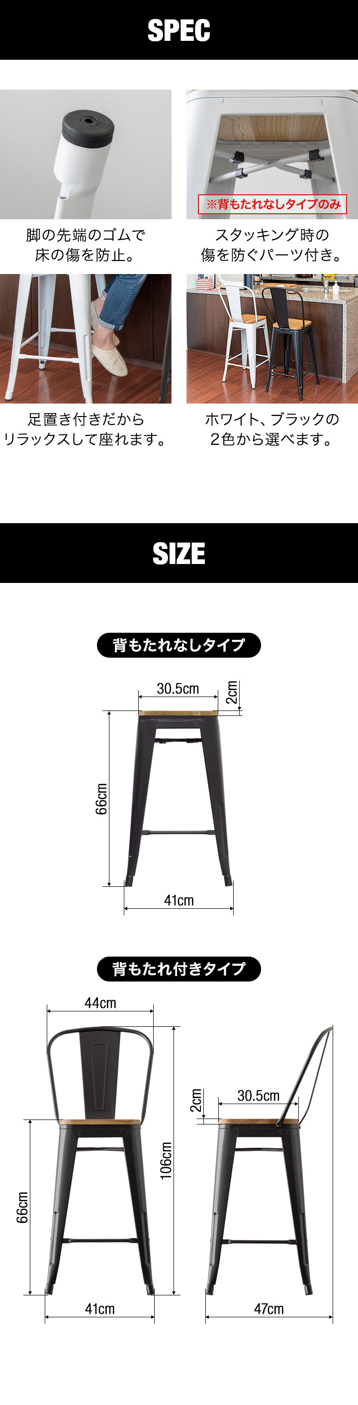 | サイズ: 【背もたれなし】 (約)幅41cm×奥行41cm×高さ66cm 【背もたれ付き】 (約)幅44cm×奥行47cm×高さ106cm |