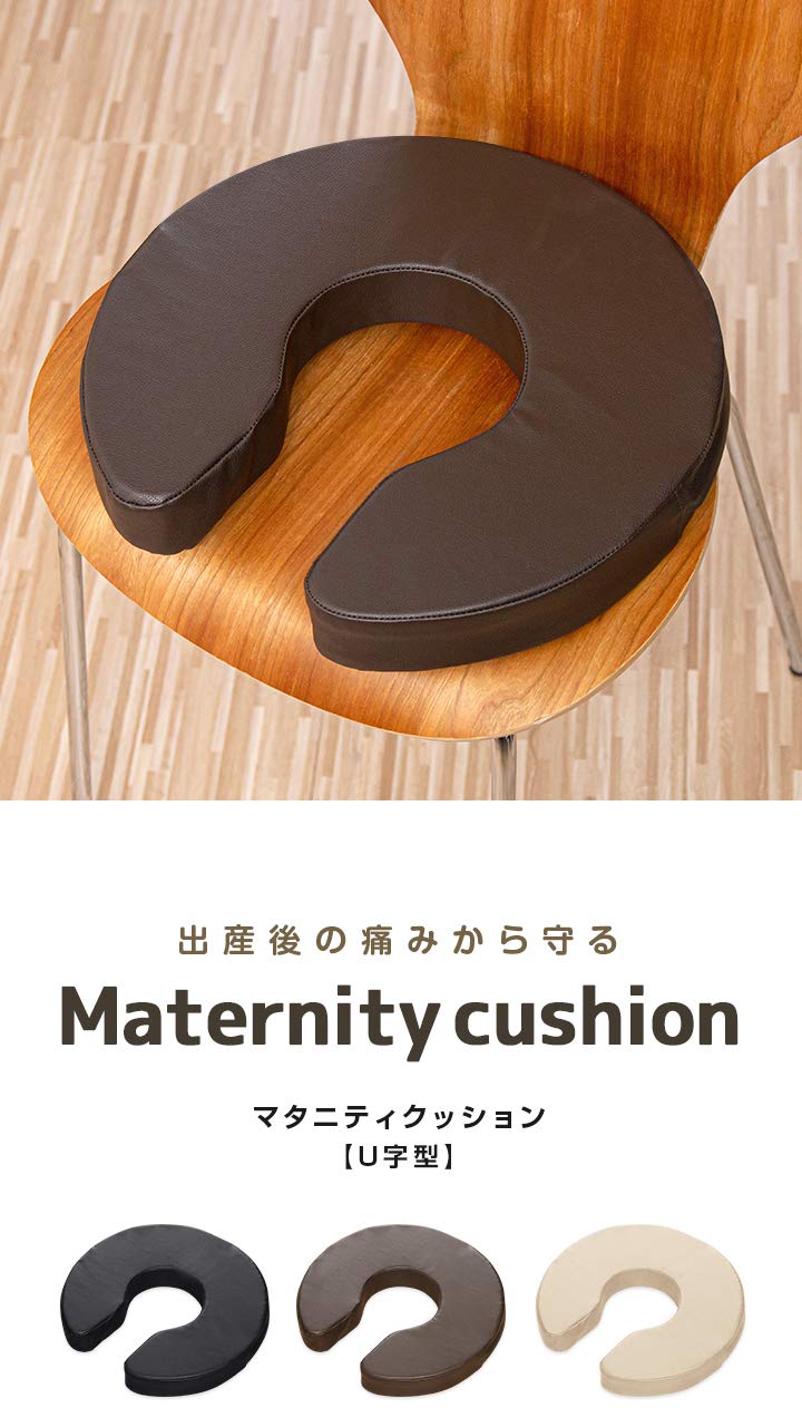 U字 マタニティクッション (ベージュ) 厚さ6cm U字クッション 円座クッション 円座 座布団 穴あきクッション 産後 術後 手術後 痔 痛み対策 PVCレザー 送料無料