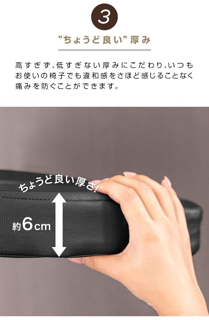 高すぎず、低すぎない厚みにこだわり、いつもお使いの椅子でも違和感をさほど感じることなく痛みを防ぐことができます。