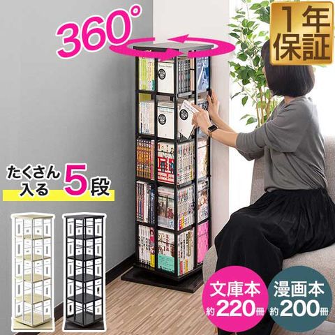 【SALE特価2/11まで】スリム回転本棚 5段 (ダークウォールナット) 40cm×40cm×111.5cm 省スペース 大容量 回転式本棚 コミックラック タワーラック 360度回転 送料無料