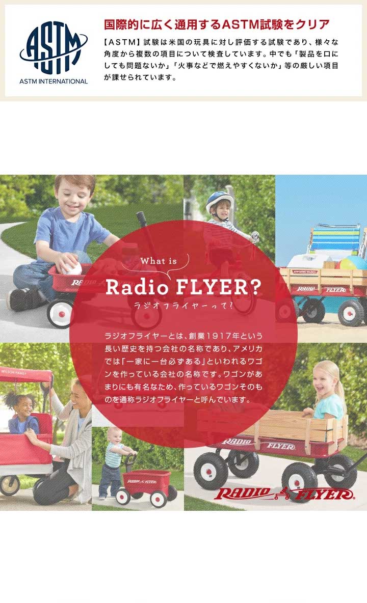 ラジオフライヤーとは、創業1917年という長い歴史を持つ会社の名称であり、アメリカでは「一家に一台必ずある」といわれるワゴンを作っている会社の名称です。ワゴンがあまりにも有名なため、作っているワゴンそのものを通称ラジオフライヤーと呼んでいます。