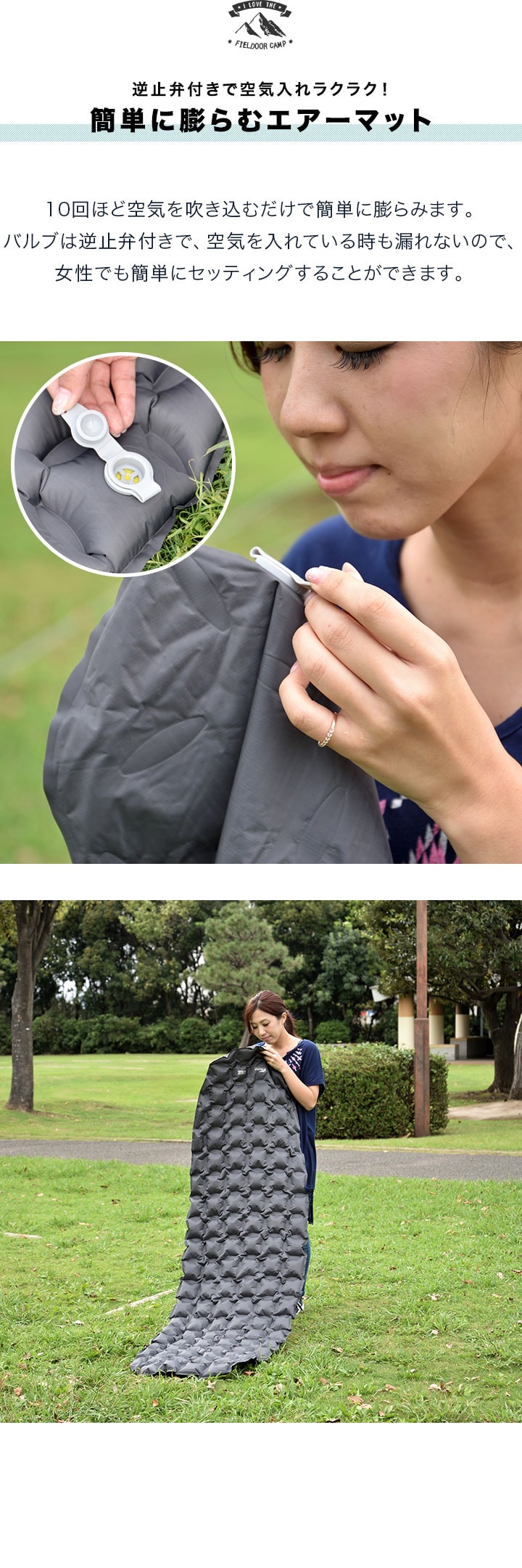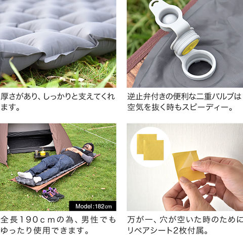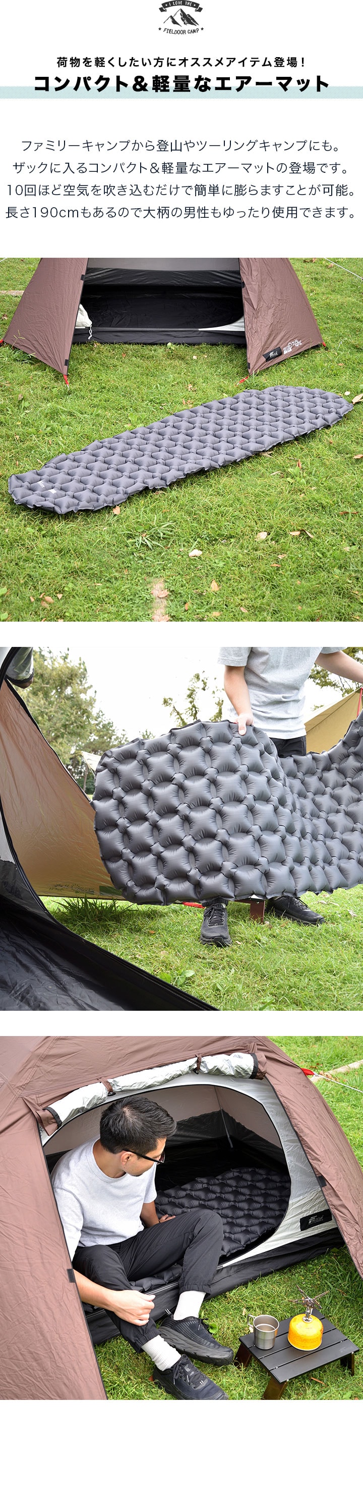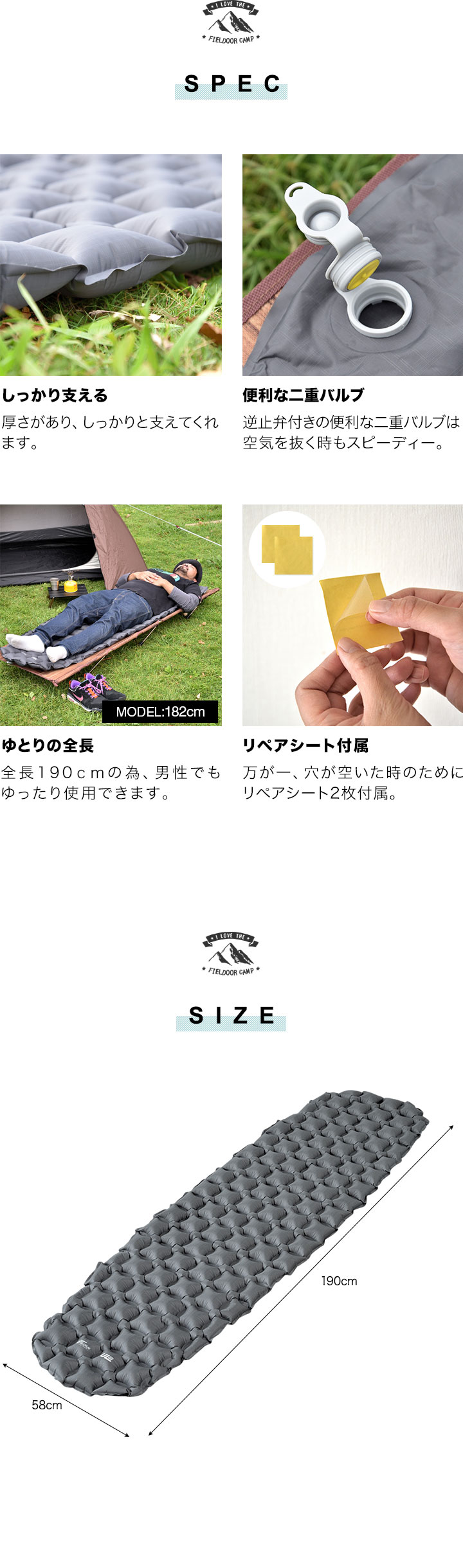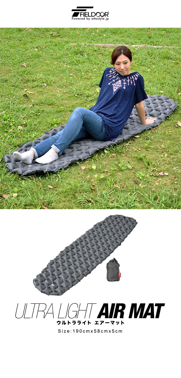 FIELDOOR キャンプマット エアーマット (エアーマット本体のみ) 190cm×58cm シングル S 厚さ5cm 超軽量 インフレータブル コンパクト 収納 ウルトラライト エアーベッド キャンプ キャンピングマット クッション シュラフ テント 登山 車中泊 送料無料