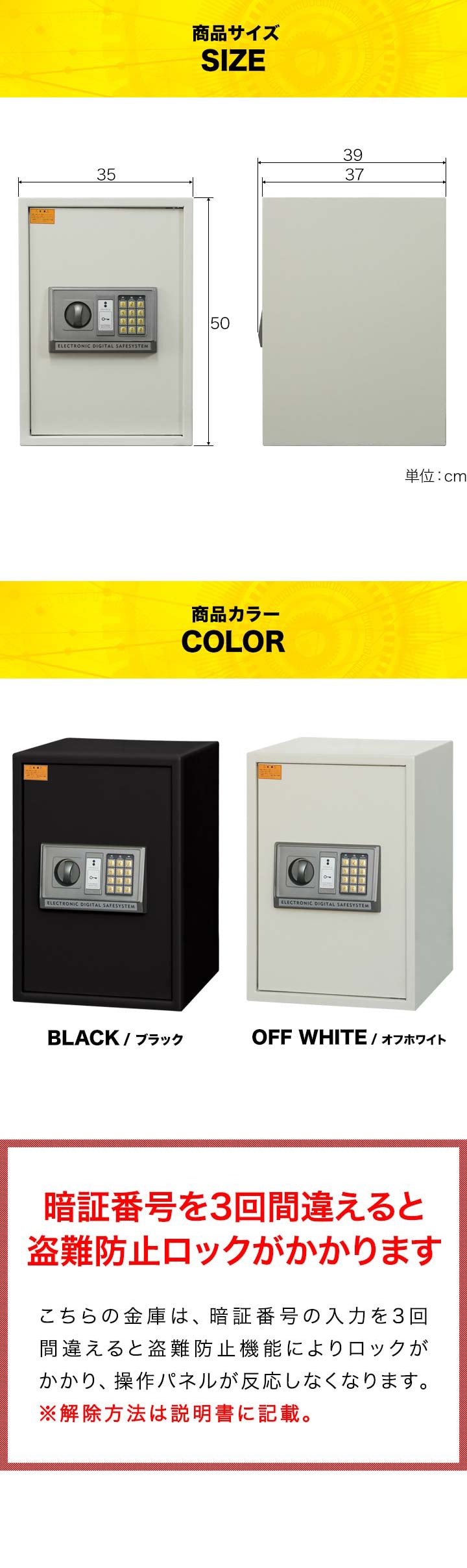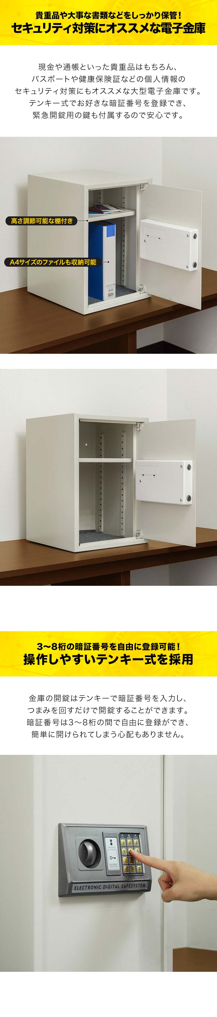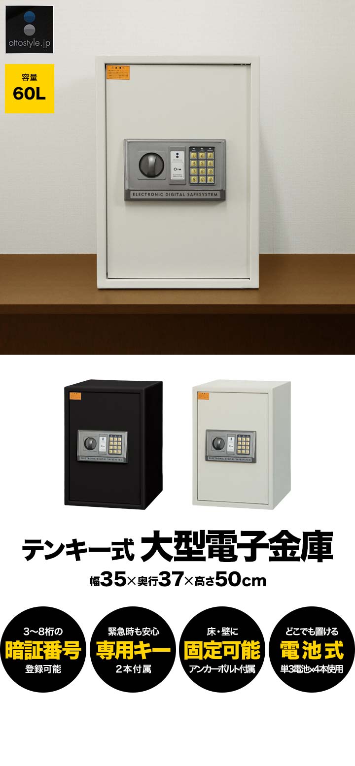 金庫 家庭用 テンキー (オフホワイト) 60L 幅35cm×奥行37cm×高さ50cm おしゃれ 防犯金庫 店舗用 中型 大型 棚 書類 保管庫 防犯 盗難防止 電子ロック デジタル金庫 コンパクト 暗証番号 3桁~8桁 アンカーボルト付き 鍵付き 緊急キー2本付 テンキー式 電子金庫 送料無料