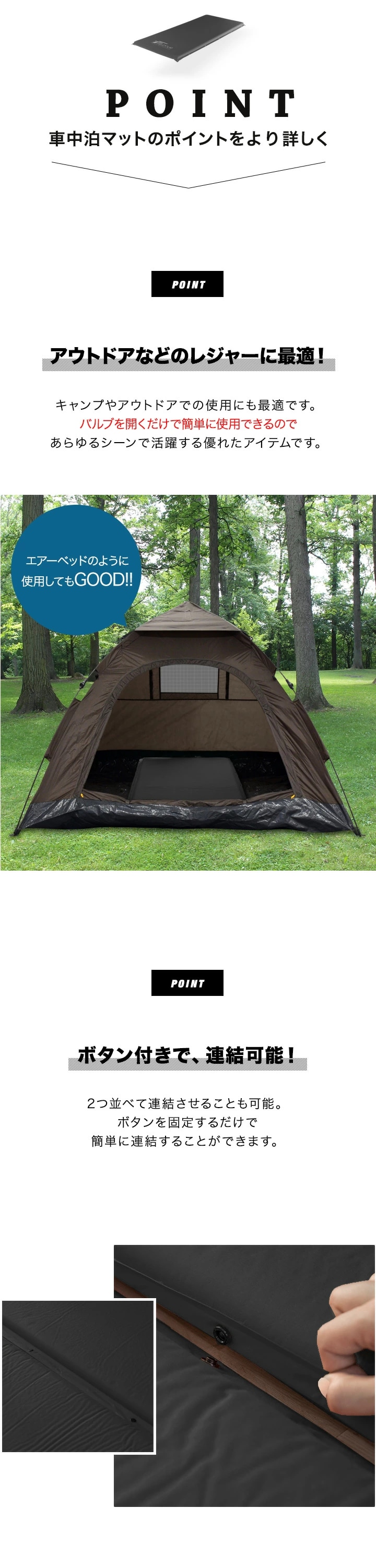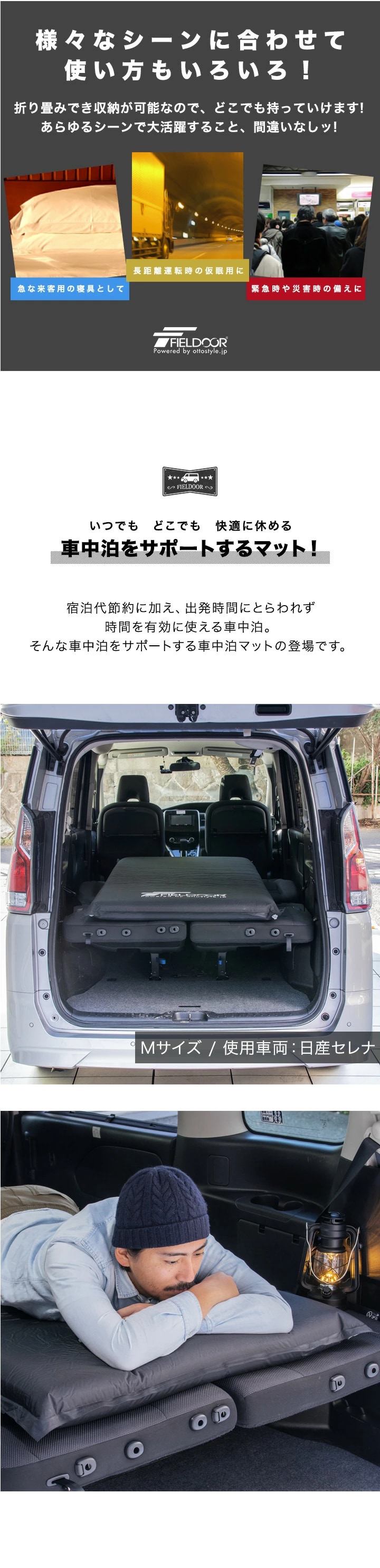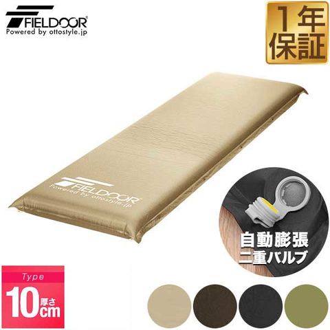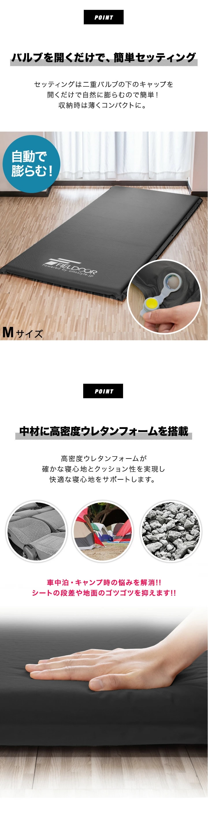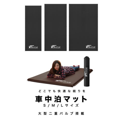 FIELDOOR 車中泊マット 10cm厚 (Mサイズ:幅90×長さ195cm/ブラウン/マット1枚のみ) 段差解消 連結 自動膨張 高密度ウレタン インフレータブル キャンプマット エアーマット エアマット エアーベッド エアベッド おすすめ 簡単 アウトドア 寝具 防災 送料無料