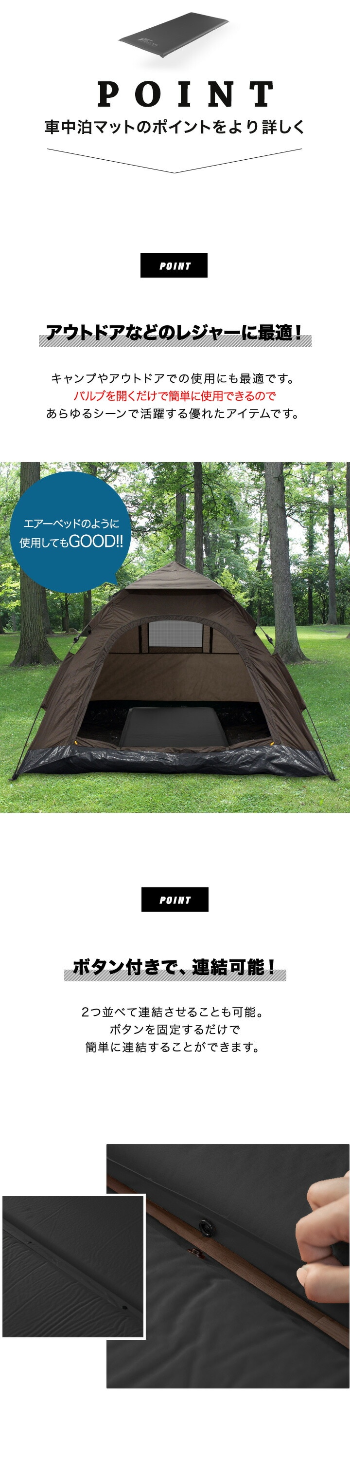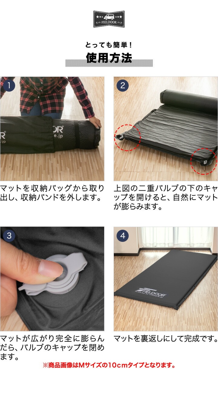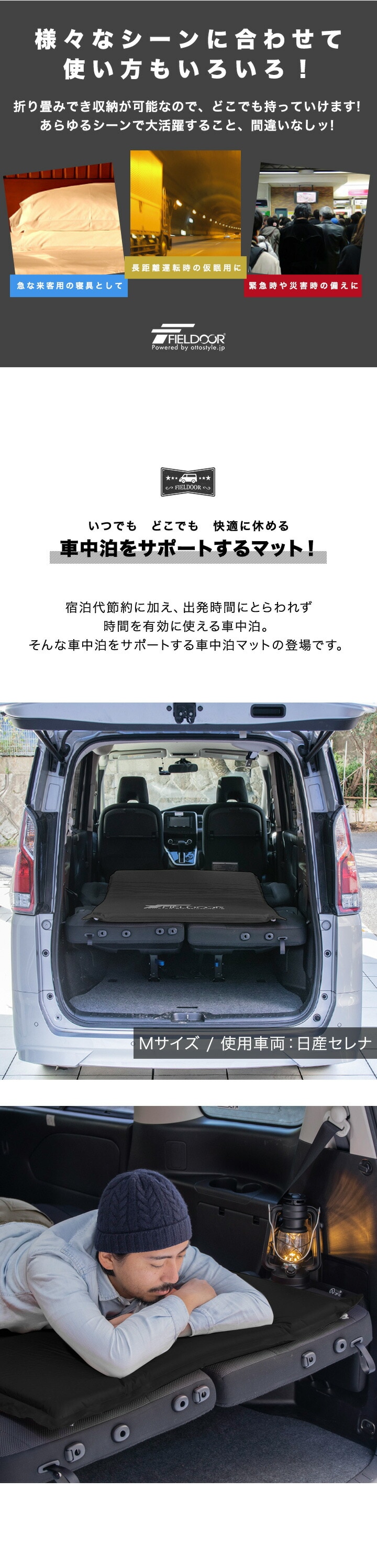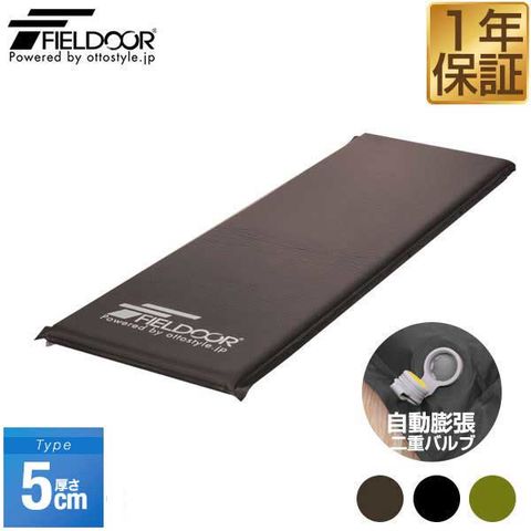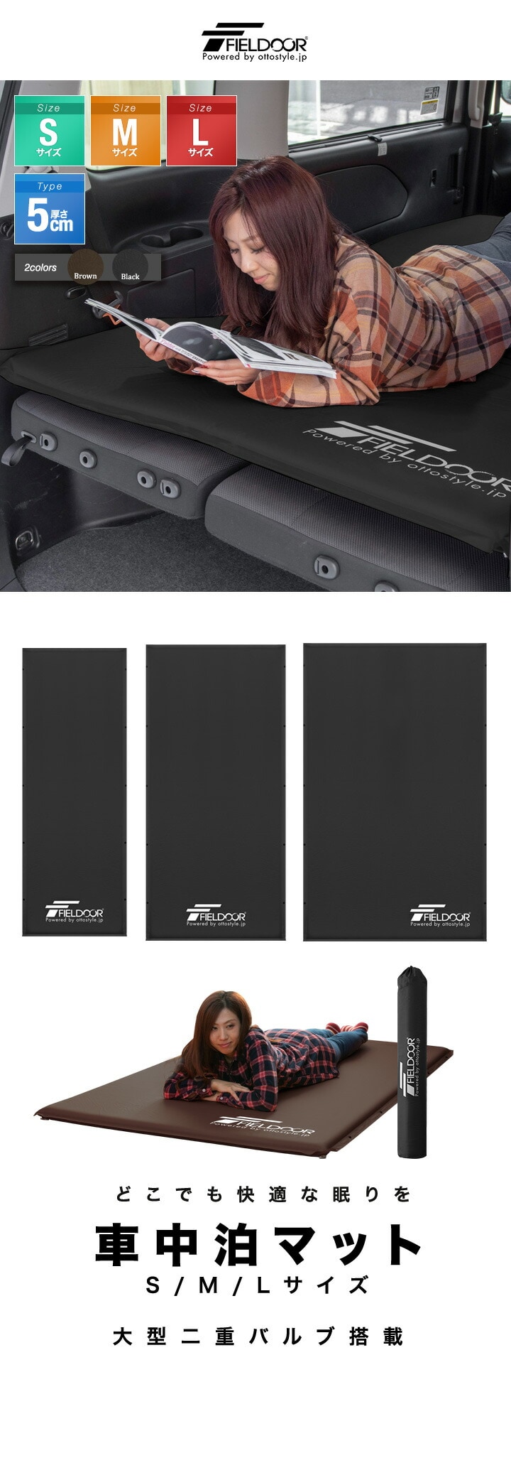 FIELDOOR 車中泊マット 5cm厚 (Lサイズ:幅123x長さ198cm/ブラウン/マット1枚のみ) 段差解消 連結 自動膨張 高密度ウレタン インフレータブルマット キャンピングマット インフレーター キャンプ 車中泊 マット 簡単 アウトドア 寝具 防災 送料無料