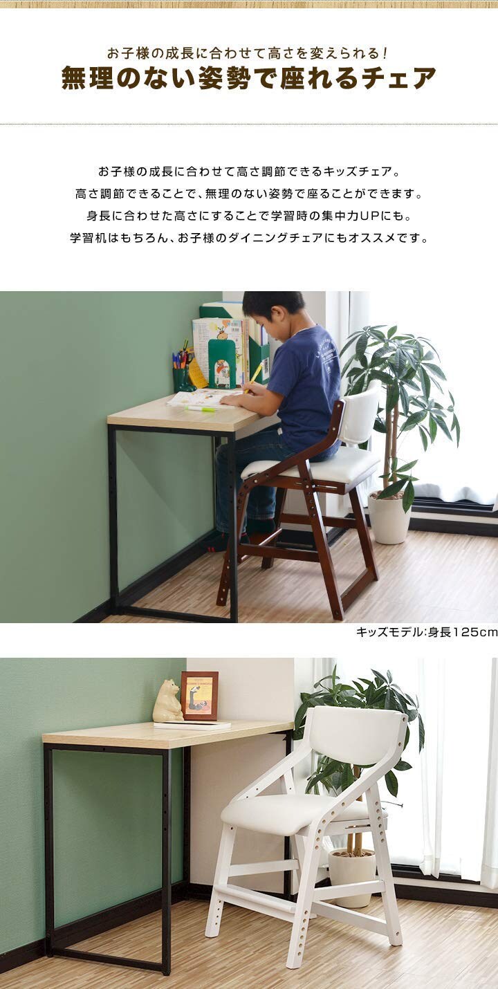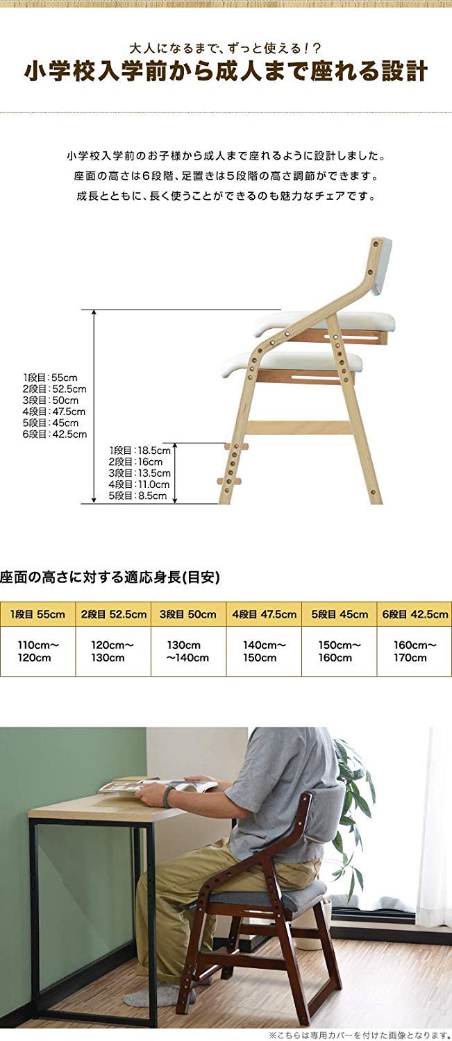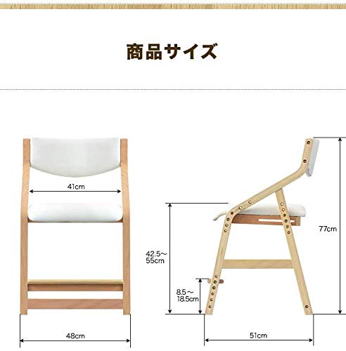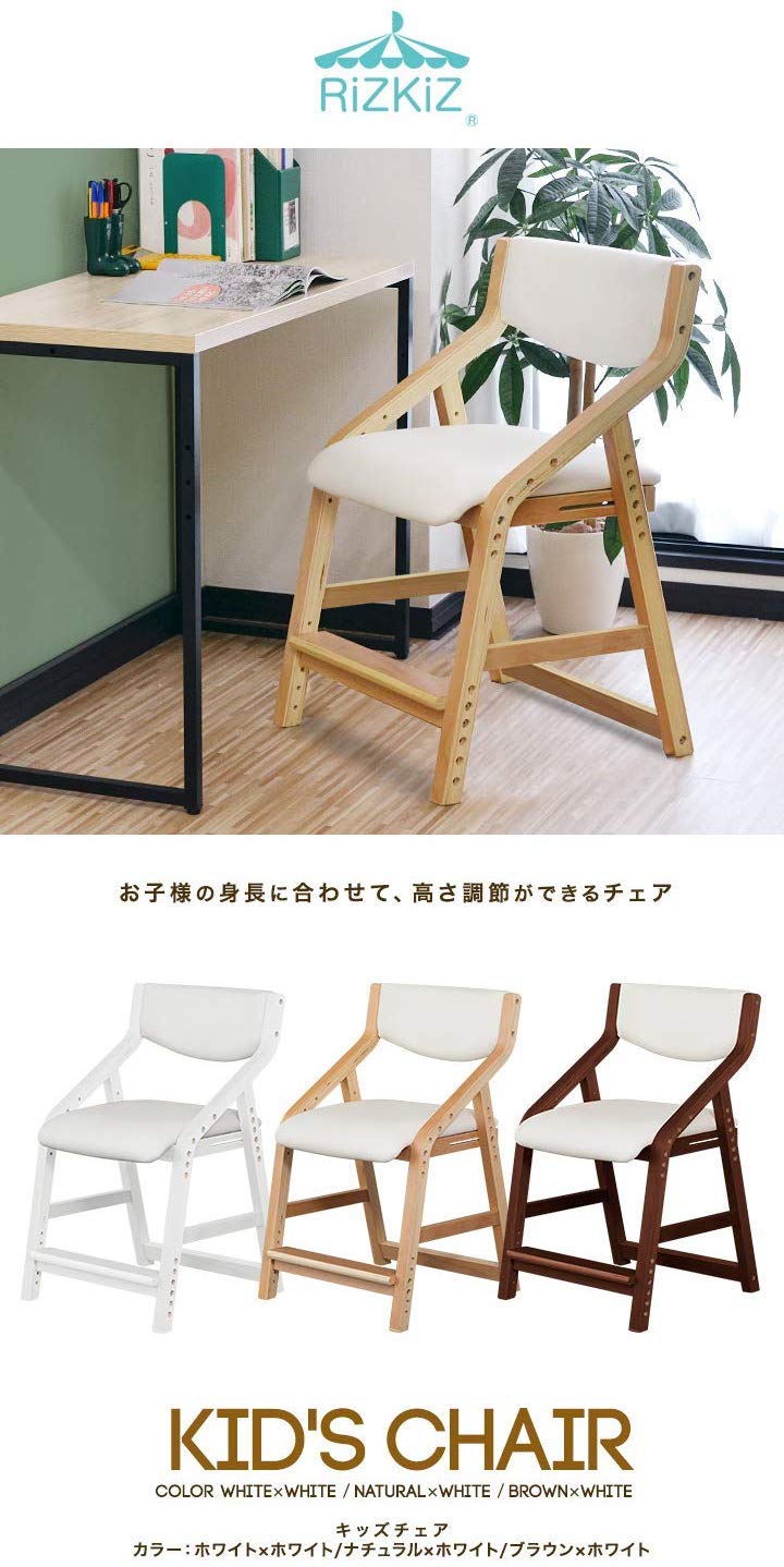 RiZKiZ 学習椅子 木製 (ホワイト×ホワイト) キッズチェア 座面高さ 6段階 42.5~55cm ダイニングチェア 子供用 キッズ 椅子 イス 学習イス 子供用いす 送料無料
