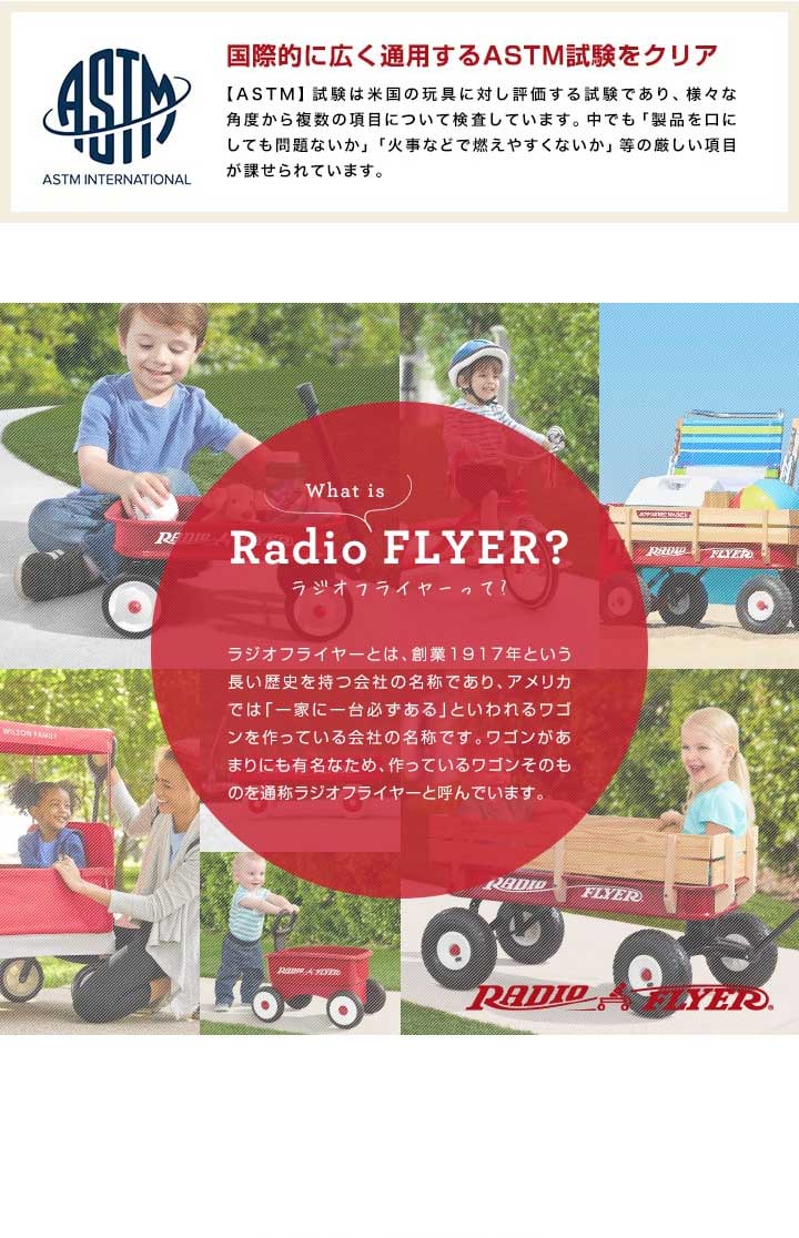 ラジオフライヤーとは、創業1917年という長い歴史を持つ会社の名称であり、アメリカでは「一家に一台必ずある」といわれるワゴンを作っている会社の名称です。ワゴンがあまりにも有名なため、作っているワゴンそのものを通称ラジオフライヤーと呼んでいます 。