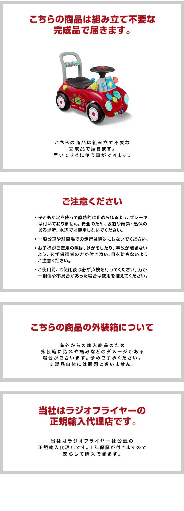 こちらはベビーウォーカーと玩具付きバギーの2通りの使い方が出来るのでお子様の初めてのラジオフライヤーに最適です。