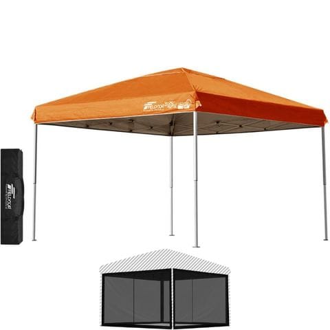 FIELDOOR ワンタッチタープテント 3m (標準:オレンジ/スチール/4点脚ロック/バグガード) テント タープ ワンタッチ ワンタッチテント ワンタッチタープ UV加工 撥水 ベンチレーション 収納バッグ付 日よけ キャンプ バーベキュー 送料無料