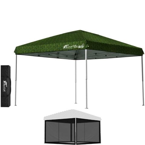 FIELDOOR ワンタッチタープテント 3m (標準:カモフラージュグリーン/スチール/4点脚ロック/バグガード) テント タープ ワンタッチ ワンタッチテント ワンタッチタープ UV加工 撥水 ベンチレーション 収納バッグ付 日よけ キャンプ バーベキュー 送料無料