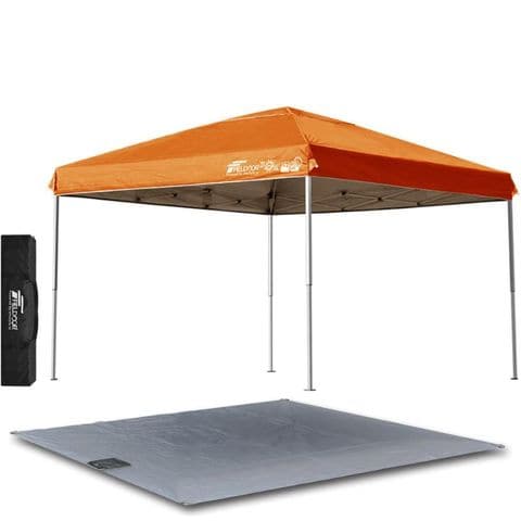FIELDOOR ワンタッチタープテント 3m (標準:オレンジ/スチール/4点脚ロック/グランドシート) テント タープ ワンタッチ ワンタッチテント ワンタッチタープ UV加工 撥水 ベンチレーション 収納バッグ付 日よけ キャンプ バーベキュー 送料無料