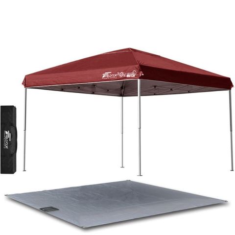FIELDOOR ワンタッチタープテント 3m (標準:ボルドー/スチール/4点脚ロック/グランドシート) テント タープ ワンタッチ ワンタッチテント ワンタッチタープ UV加工 撥水 ベンチレーション 収納バッグ付 日よけ キャンプ バーベキュー 送料無料