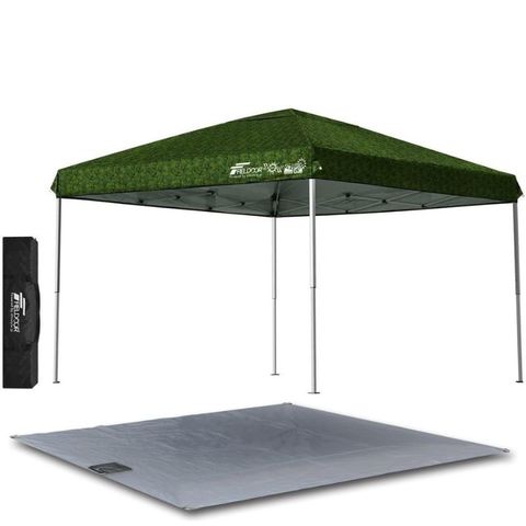 FIELDOOR ワンタッチタープテント 3m (標準:カモフラージュグリーン/スチール/4点脚ロック/グランドシート) テント タープ ワンタッチ ワンタッチテント ワンタッチタープ UV加工 撥水 ベンチレーション 収納バッグ付 日よけ キャンプ バーベキュー 送料無料