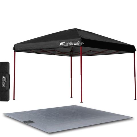 FIELDOOR ワンタッチタープテント 3m (標準:ブラック/スチール/4点脚ロック/グランドシート) テント タープ ワンタッチ ワンタッチテント ワンタッチタープ UV加工 撥水 ベンチレーション 収納バッグ付 日よけ キャンプ バーベキュー 送料無料