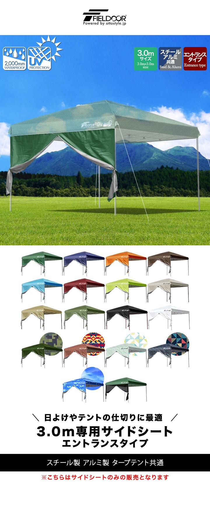 FIELDOOR ワンタッチタープ 3.0m 専用サイドシート (エントランス/ノーマル/標準:ライトベージュ) 横幕 3m 300cm ウォールスクリーン 追加オプション ワンタッチタープ専用 日よけ 目隠し シェード ※タープテント本体別売 送料無料