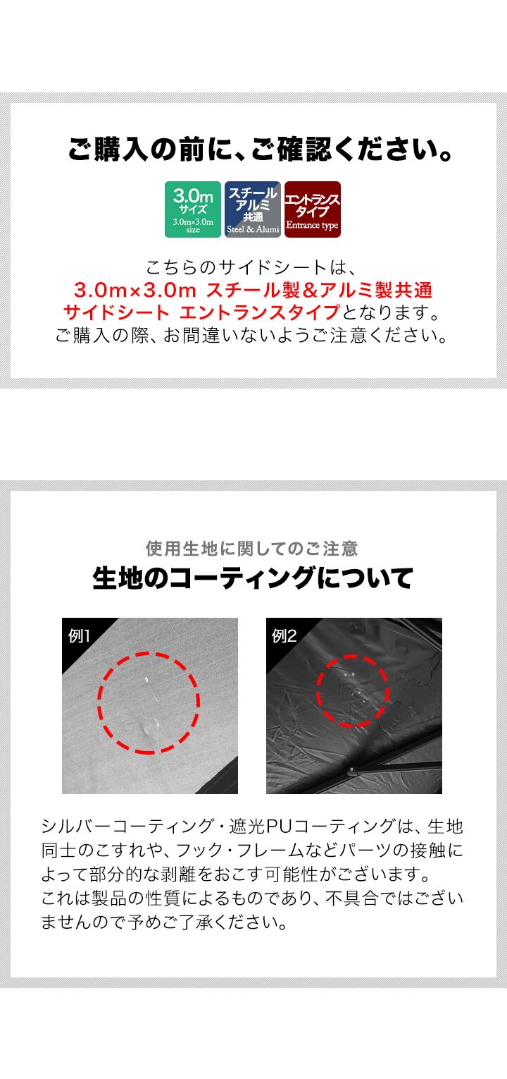 | サイズ: 3.0m×3.0m タープテント専用(スチール製・アルミ製共通) |