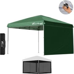 FIELDOOR ワンタッチタープテント 3m (標準:グリーン/スチール/4点脚ロック/強化サポート/サイドシート1枚付) テント タープ ワンタッチ ワンタッチテント ワンタッチタープ UV加工 撥水 ベンチレーション 収納バッグ付 日よけ キャンプ バーベキュー 送料無料
