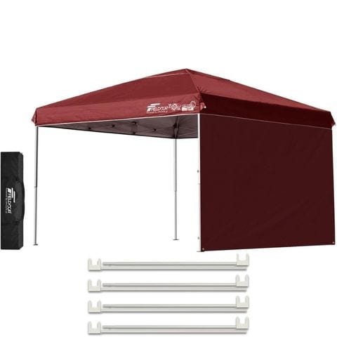 FIELDOOR ワンタッチタープテント 3m (標準:ボルドー/スチール/4点脚ロック/強化サポート/サイドシート1枚付) テント タープ ワンタッチ ワンタッチテント ワンタッチタープ UV加工 撥水 ベンチレーション 収納バッグ付 日よけ キャンプ バーベキュー 送料無料