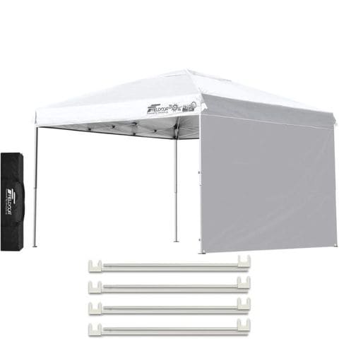 FIELDOOR ワンタッチタープテント 3m (標準:ホワイト/スチール/4点脚ロック/強化サポート/サイドシート1枚付) テント タープ ワンタッチ ワンタッチテント ワンタッチタープ UV加工 撥水 ベンチレーション 収納バッグ付 日よけ キャンプ バーベキュー 送料無料