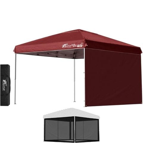 FIELDOOR ワンタッチタープテント 3m (標準:ボルドー/スチール/4点脚ロック/バグガード/サイドシート1枚付) テント タープ ワンタッチ ワンタッチテント ワンタッチタープ UV加工 撥水 ベンチレーション 収納バッグ付 日よけ キャンプ バーベキュー 送料無料のレビュー