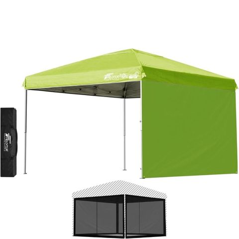 FIELDOOR ワンタッチタープテント 3m (標準:ライム/スチール/4点脚ロック/バグガード/サイドシート1枚付) テント タープ ワンタッチ ワンタッチテント ワンタッチタープ UV加工 撥水 ベンチレーション 収納バッグ付 日よけ キャンプ バーベキュー 送料無料