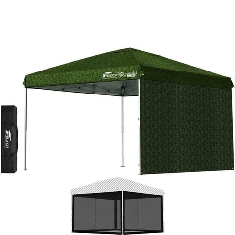 FIELDOOR ワンタッチタープテント 3m (標準:カモフラージュグリーン/スチール/4点脚ロック/バグガード/サイドシート1枚付) テント タープ ワンタッチ ワンタッチテント ワンタッチタープ UV加工 撥水 ベンチレーション 収納バッグ付 日よけ キャンプ 送料無料