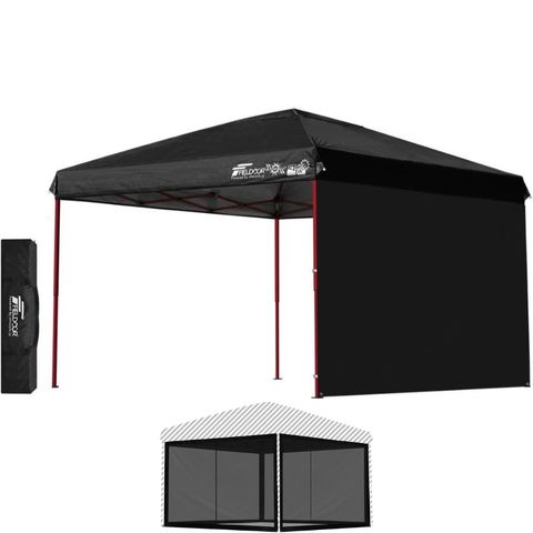 FIELDOOR ワンタッチタープテント 3m (標準:ブラック/スチール/4点脚ロック/バグガード/サイドシート1枚付) テント タープ ワンタッチ ワンタッチテント ワンタッチタープ UV加工 撥水 ベンチレーション 収納バッグ付 日よけ キャンプ バーベキュー 送料無料