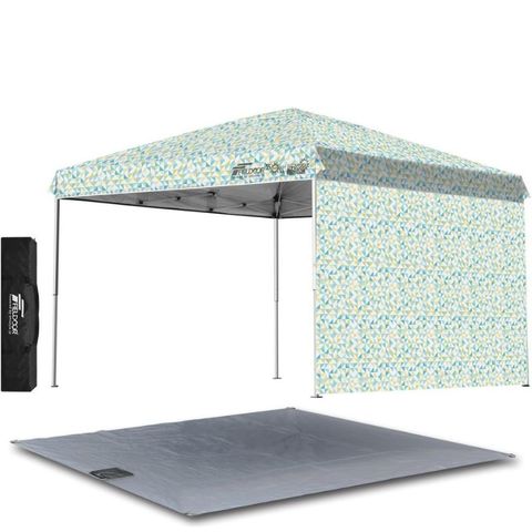 FIELDOOR ワンタッチタープテント 3m (標準:トライアングルホワイト/スチール/4点脚ロック/グランドシート/サイドシート1枚付) テント タープ ワンタッチ ワンタッチテント ワンタッチタープ UV加工 撥水 ベンチレーション 収納バッグ付 日よけ キャンプ 送料無料