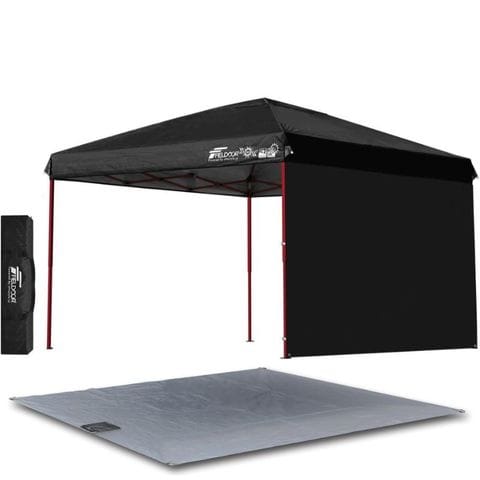 FIELDOOR ワンタッチタープテント 3m (標準:ブラック/スチール/4点脚ロック/グランドシート/サイドシート1枚付) テント タープ ワンタッチ ワンタッチテント ワンタッチタープ UV加工 撥水 ベンチレーション 収納バッグ付 日よけ キャンプ バーベキュー 送料無料