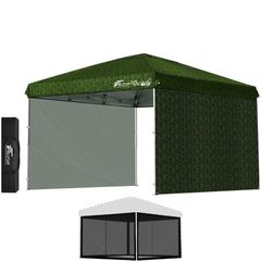 FIELDOOR ワンタッチタープテント 3m (標準:カモフラージュグリーン/スチール/4点脚ロック/グランドシート/サイドシート2枚付) テント タープ ワンタッチ ワンタッチテント ワンタッチタープ UV加工 撥水 ベンチレーション 収納バッグ付 日よけ キャンプ 送料無料
