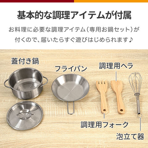 | 付属品: 蓋付き鍋・フライパン・調理用フォーク・調理用ヘラ・泡立て器 各1個 |