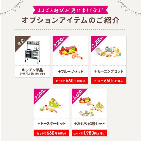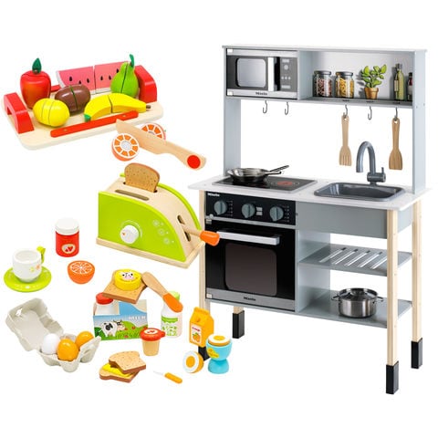 ミーレ ままごと キッチン (お鍋5点+おもちゃ3種セット) 木製 専用お鍋・フライパン5点セット付き 子供 子ども 3歳~ ごっこ遊び ままごとキッチン ままごとセット ままごとキッチンセット 木製ままごと お料理 食材 知育玩具 かわいい クリスマス 送料無料