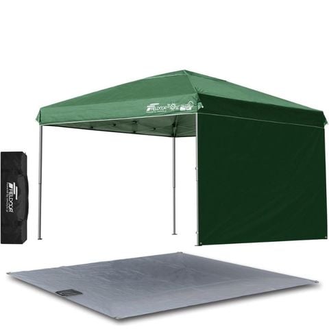 FIELDOOR ワンタッチタープテント 3m (標準:グリーン/アルミ/4点脚ロック/グランドシート/サイドシート1枚付) 軽量 テント タープ ワンタッチ ワンタッチテント ワンタッチタープ UV加工 撥水 ベンチレーション 収納バッグ付 日よけ キャンプ 送料無料