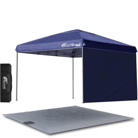FIELDOOR ワンタッチタープテント 3m (標準:ブルー/アルミ/4点脚ロック/グランドシート/サイドシート1枚付) 軽量 テント タープ ワンタッチ ワンタッチテント ワンタッチタープ UV加工 撥水 ベンチレーション 収納バッグ付 日よけ キャンプ 送料無料