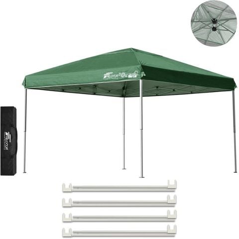 FIELDOOR ワンタッチタープテント 3m (標準:グリーン/スチール/強化版サイドフレーム/4点脚ロック/強化サポート) テント タープ ワンタッチ ワンタッチテント ワンタッチタープ UV加工 撥水 ベンチレーション 収納バッグ付 日よけ キャンプ 送料無料