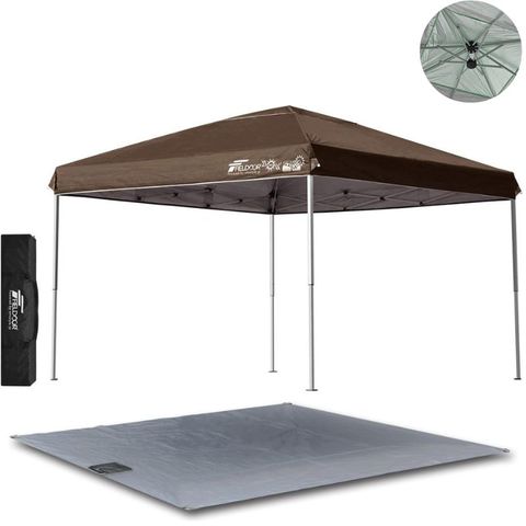 FIELDOOR ワンタッチタープテント 3m (標準:ダークブラウン/スチール/強化版サイドフレーム/4点脚ロック/グランドシート) テント タープ ワンタッチ ワンタッチテント ワンタッチタープ UV加工 撥水 ベンチレーション 収納バッグ付 日よけ キャンプ 送料無料