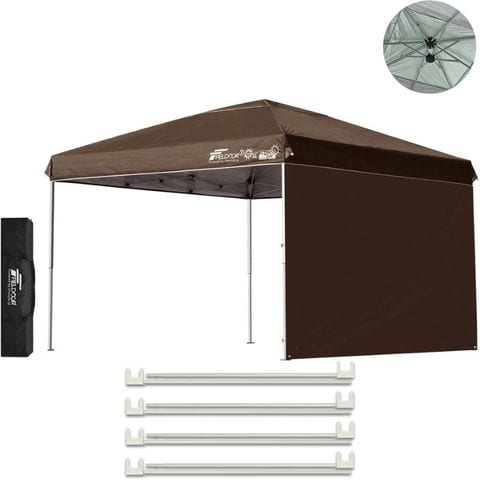 FIELDOOR ワンタッチタープテント 3m (標準:ダークブラウン/スチール/強化版サイドフレーム/4点脚ロック/強化サポート/サイドシート1枚付) テント タープ ワンタッチテント ワンタッチタープ UV加工 撥水 ベンチレーション 日よけ キャンプ 送料無料
